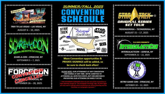 The Autograph Concierge is proud to offer monthly Mail-In Private Signings with various 'Star Trek' talent. Please be sure to check out our FAQ to read how the process works...